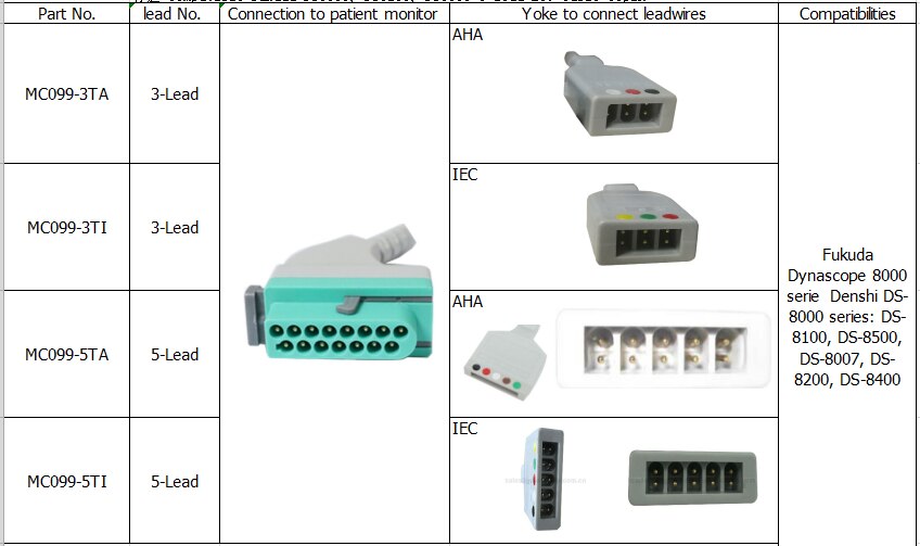 Συμβατό καλώδιο ECG 3 καλωδίων ECK με καλώδιο fukuda DS8100, DS8200, DS8500