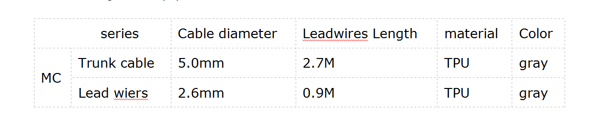 Εφαρμόστε για πολλαπλών παραμέτρων οθόνη / ηλεκτροκαρδιογράφημα μηχανήματα / δοκιμασίες treadmill ή απινιδωτή, τη διέλευση του βιο-ηλεκτρικού σήματος του ανθρώπινου σώματος. Τα καλώδια ασθενούς και τα ηλεκτρόδια ηλεκτροδίων χρησιμοποιούνται για τη σύνδεση ηλεκτροδίων, καθετήρων και / ή αισθητήρων που τοποθετούνται σε κατάλληλες θέσεις στον ασθενή σε συσκευή παρακολούθησης για γενική παρακολούθηση και / ή διαγνωστική αξιολόγηση από έναν επαγγελματία υγείας