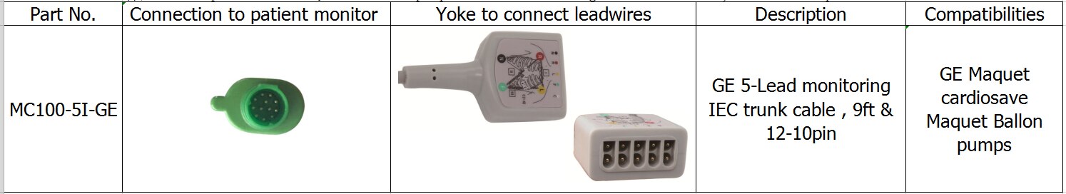 Συμβατές αντλίες μπαλόνι GE MAQUET 5-καλώδιο παρακολούθησης IEC καλώδιο κορμού, 9FT & 12-10pin