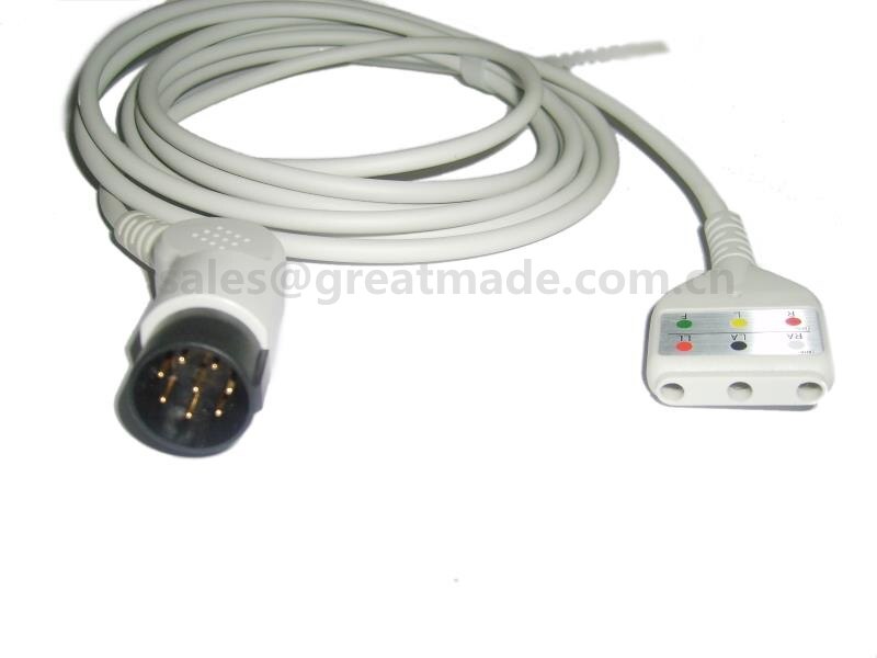Συμβατό καλώδιο ηλεκτροκαρδιογράφων Nihon Kohden, 8pin, Din Yoke, 3-ηλεκτρόδιο, OEC-6102A