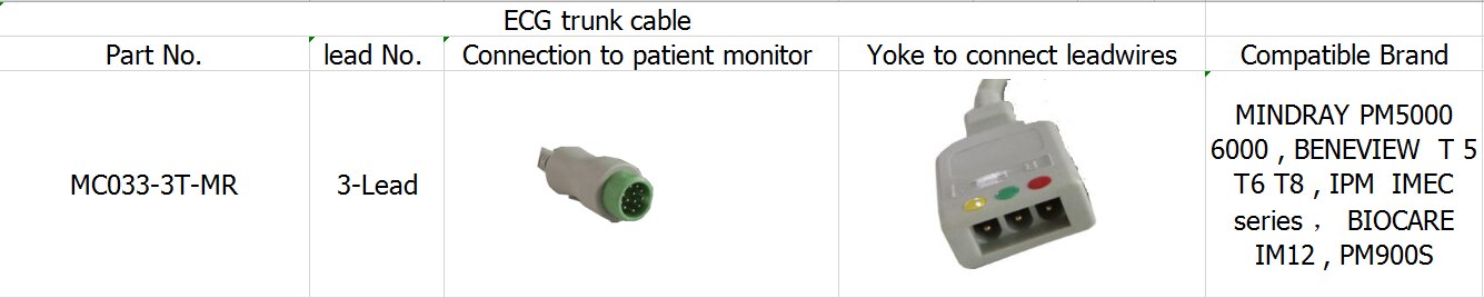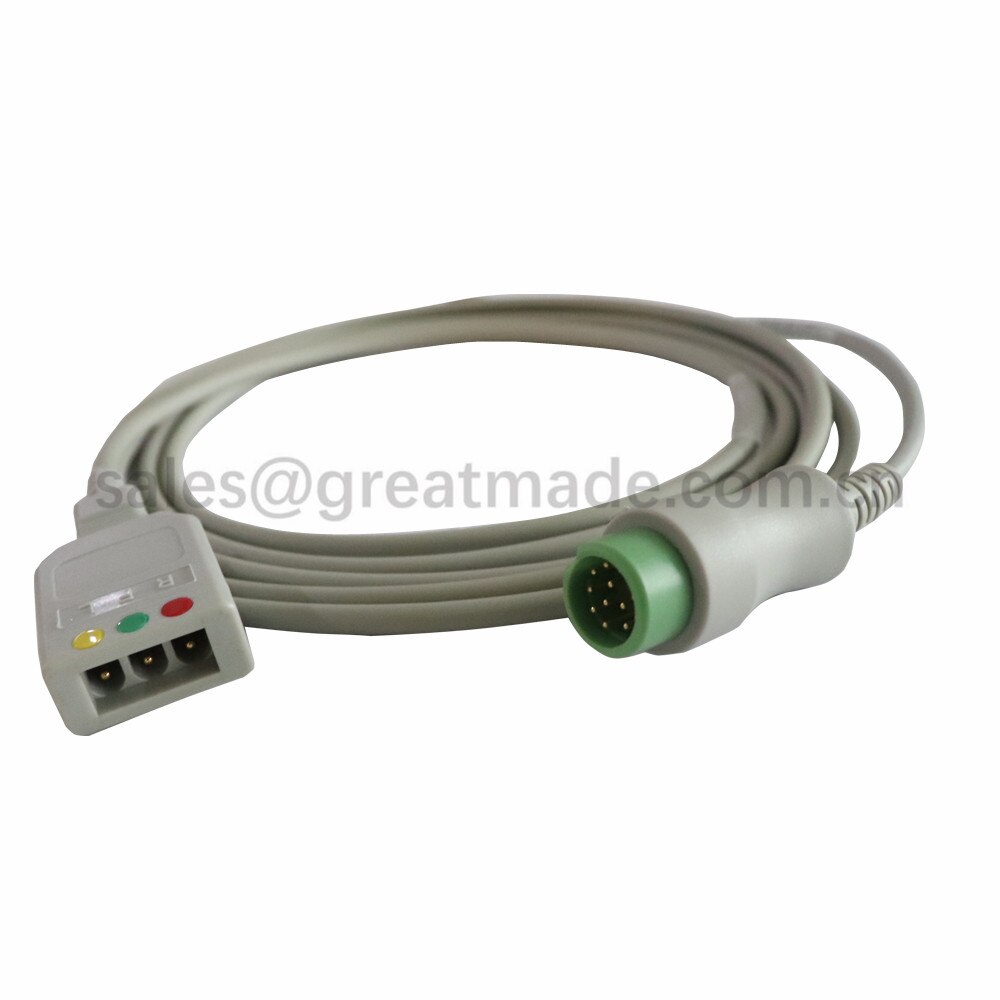Καλώδιο ηλεκτροκαρδιογράφων Καλώδιο τριπολικού καλωδίου για BENEVIEW T5 T6 T8, BIOCARE IM12, PM900S