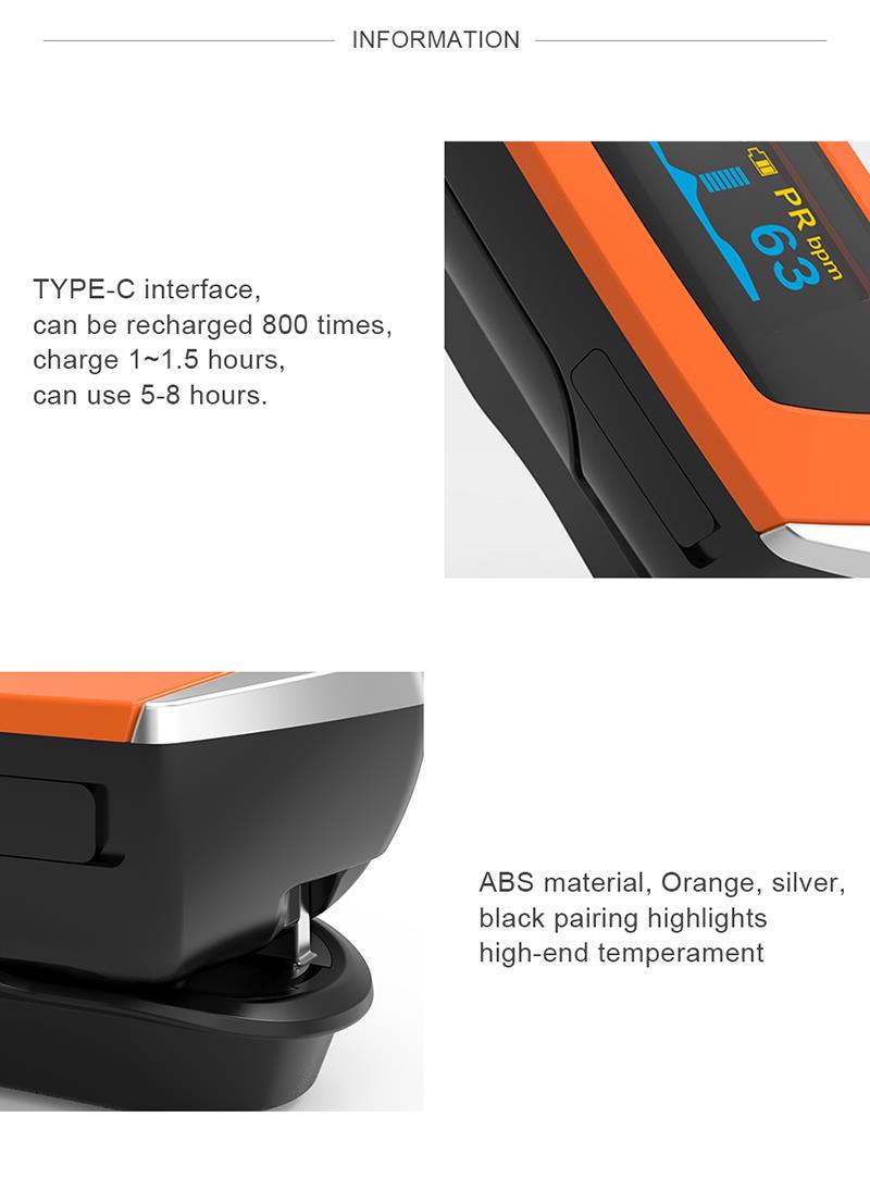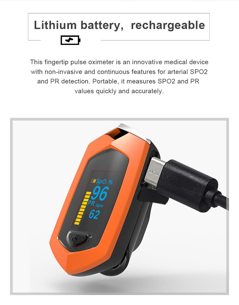 Ένα κλειδί αστέρι, Μπορεί να επαναφορτιζόμενη, Αισθητήρας επιτάχυνσης, αυτόματη απενεργοποίηση 8s, μετρήσεις PR & SPO2, Απλή φορητή